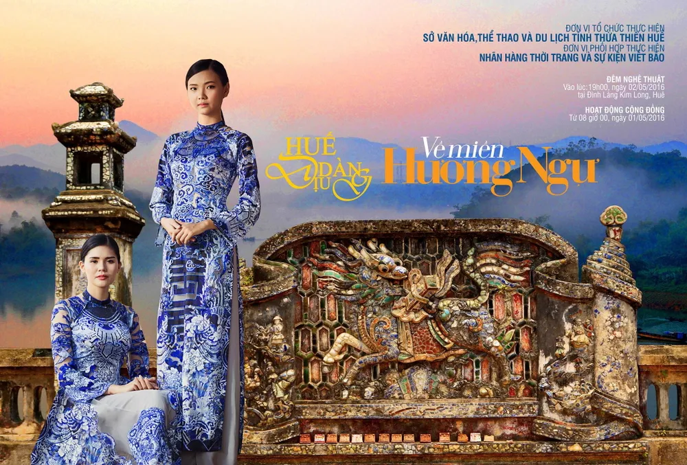 Thiếu nữ Huế với bộ áo dài mang dấu ấn mỹ thuật Huế và kiến trúc đình cổ Kim Long được dùng làm biểu tượng cho chương trình.