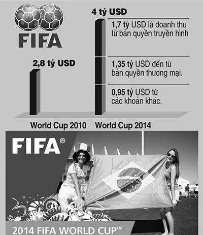 Nếu World Cup 2010 đã là con số không tưởng thì World Cup 2014 bóng chưa lăn mà FIFA đã thắng đậm với tiền tỉ USD tăng vọt.