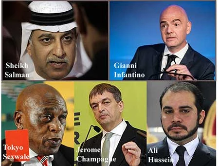 | Năm ứng viên nhưng sẽ là cuộc đua song mã Đó là hai nhân vật nặng ký Sheikh Salman và Infantino. • Sheikh Salman là hoàng thân người Bahrain, đương kim Chủ tịch LĐBĐ châu Á (AFC) và là thành viên Ủy ban điều hành FIFA (Exco). • Gianni Infantino là tổng thư ký UEFA, đã làm việc ở cơ quan đầu não của bóng đá châu Âu từ năm 2000. Còn lại ba nhân vật ít nặng ký hơn gồm: • Tokyo Sexwale là doanh nhân giàu có người Nam Phi từng ngồi tù cùng với Nelson Mandela ở đảo Robben. • Jerome Champagne, Phó Tổng Thư ký FIFA từng làm việc trong ngoại giao đoàn của Pháp. • Hoàng thân Ali bin al-Hussein. Thành viên gia đình hoàng gia Jordan, ông cũng là người trong lần bầu cử trước đã không thắng được Blatter bởi thua ở cuộc đua nơi hậu trường. ĐT |