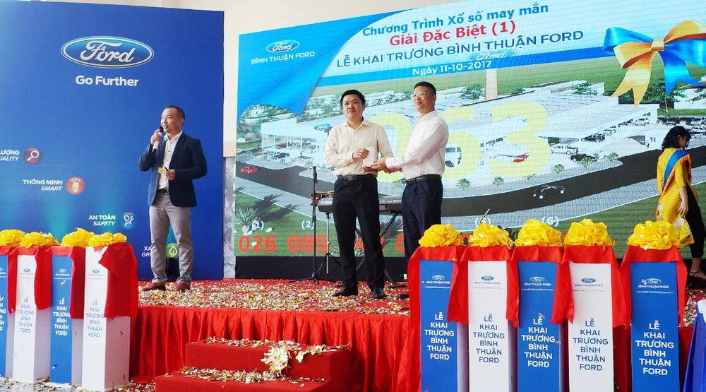 Ông Nguyễn Văn Dũng, TGĐ Ford Việt Nam trao thưởng cho khách hàng may mắn tại lễ khai trương