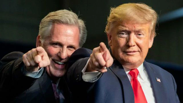 Cựu Tổng thống Mỹ Donald Trump (phải) và lãnh đạo phe thiểu số Cộng hòa tại Hạ viện Kevin McCarthy (trái). Ảnh: TWITTER