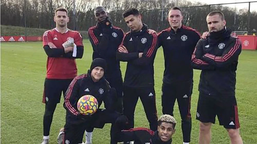 Các cầu thủ MU chụp ảnh "siêu ngầu" cùng nhau trong buổi tập mới nhất ở trung tâm huấn luyện Carrington. ẢNH: GETTY