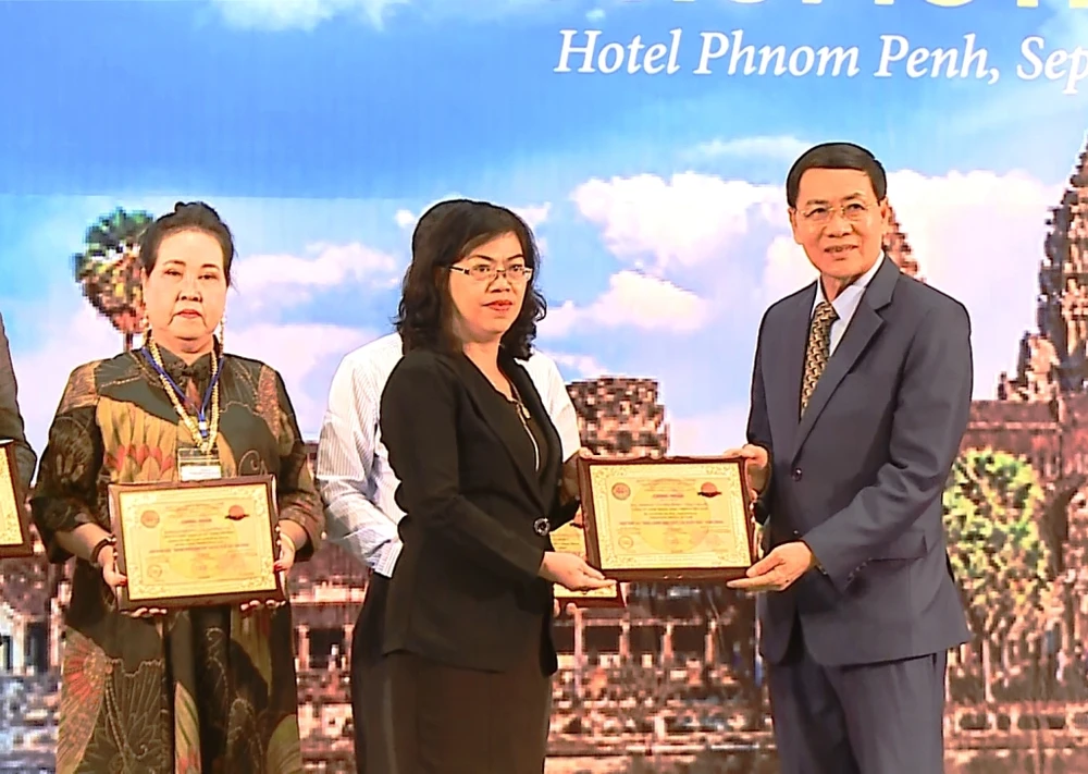 Đại diện Công ty FrieslandCampina Việt Nam (trái) nhận giải thưởng từ ban tổ chức