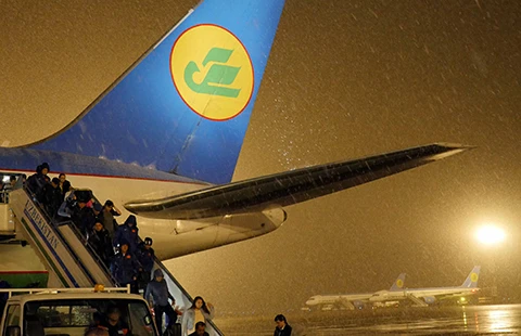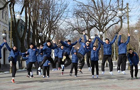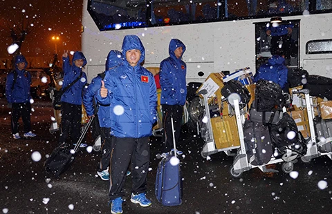 Từ khí hậu nhiệt đới, sau hai chuyến bay, toàn đội hạ cánh tại sân bay Toshkent Xaloaro (Uzbekistan) với thời tiết rét buốt thấu xương. Vừa bước xuống sân bay, dù được thông báo trước nhưng toàn đội hoàn toàn bất ngờ trước cảnh mưa tuyết và sương mù dày đặc.
