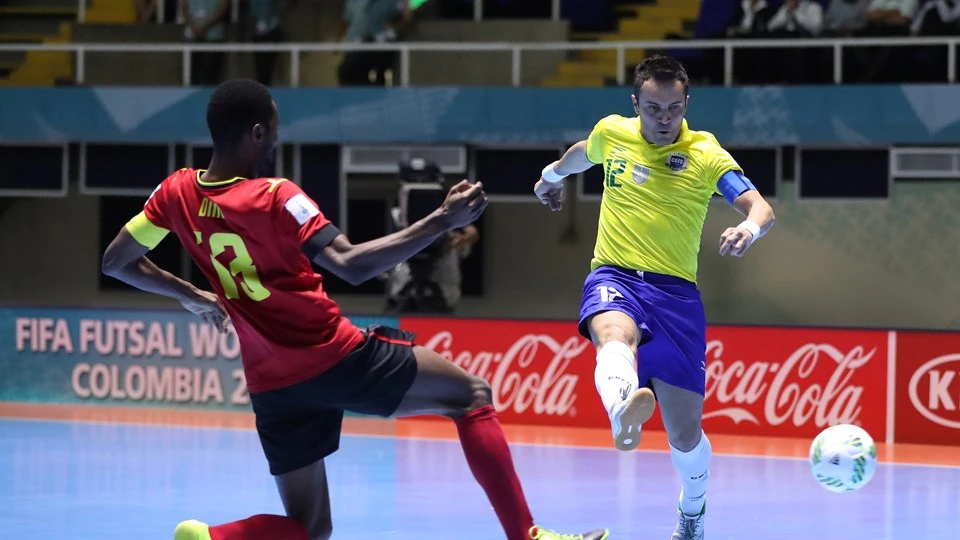"Vua" Futsal Falcao (áo vàng) của Brazil trong trận thắng Mozambique 15-3.