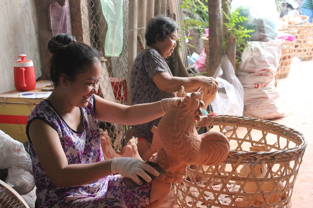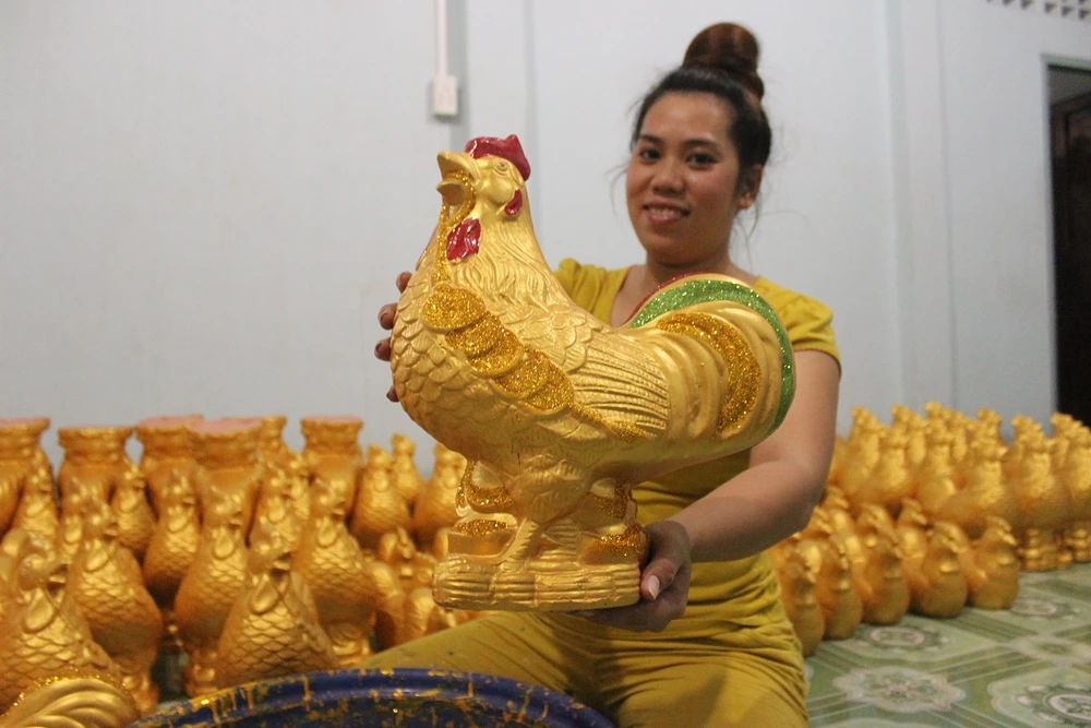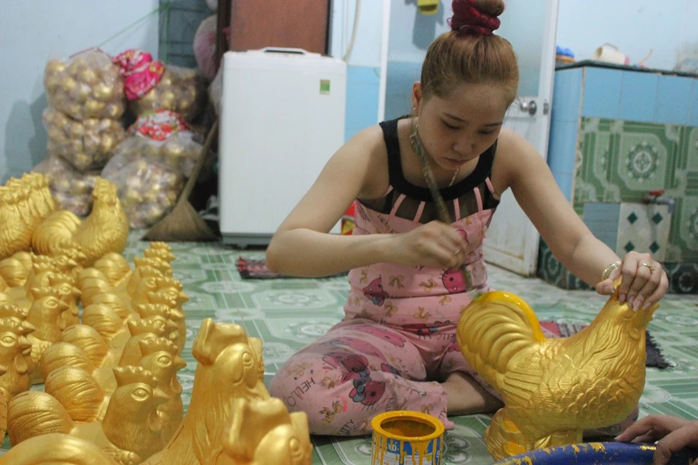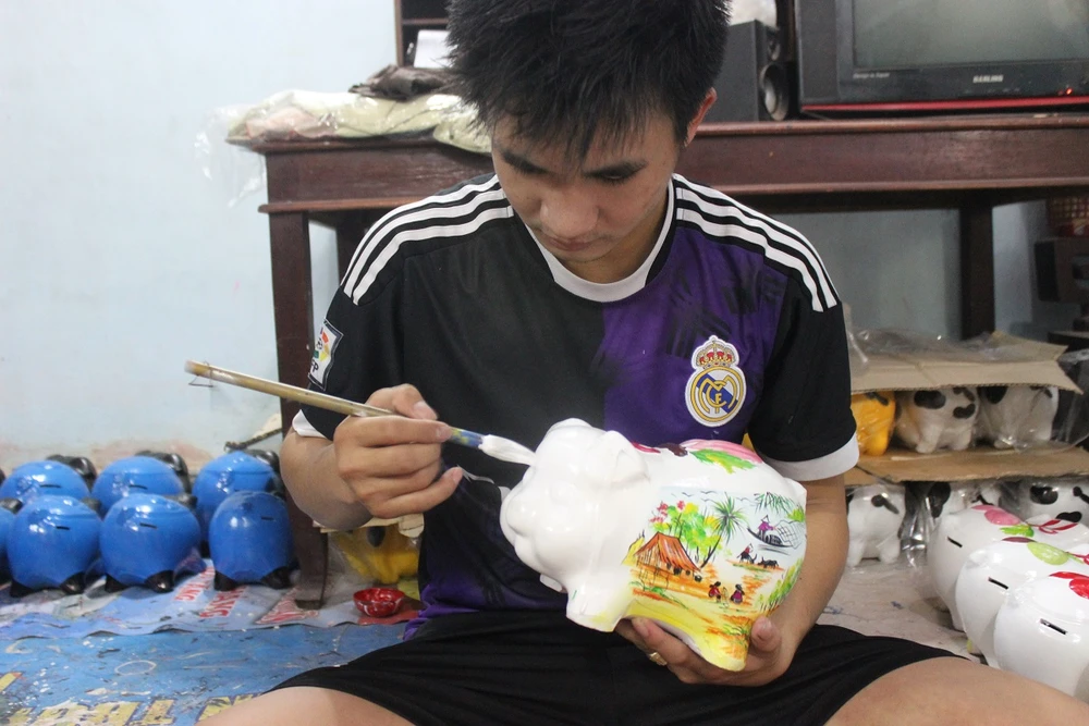 “Mùa Tết khách hàng đặt, mình không ráng làm thì qua mùa sẽ không bán được. Năm nay, những mẫu gà, heo đất trang trí hình thức bắt mắt như dát vàng, tranh phong cảnh, heo quay, chó đốm, Đô rê mon được nhiều khách hàng ưa chuộng”, dù bận rộn nhưng anh Tâm vẫn hào hứng chia sẻ về công việc.