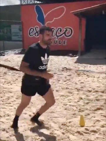 Costa tập luyện một mình duy trì thể lực ở bãi biển Brazil.