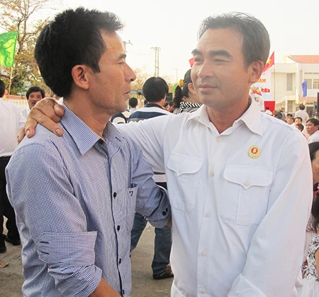 Vượt hàng ngàn cây số, cựu binh Lê Hữu Thảo (Hà Tĩnh) (trái) tìm gặp đồng đội cùng tàu HQ-604 là cựu binh Lê Minh Thoa (Bình Định). Ảnh: TẤN LỘC