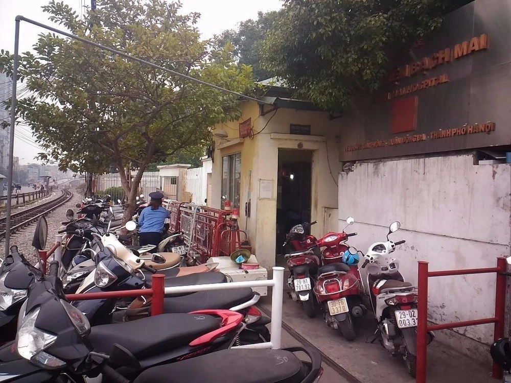 Có mặt tại khu vực này, hai nữ nhân viên gác nhau thay phiên sau mời những người điều khiển xe máy có ý định vào bên trong BV tới gửi xe. Bãi gửi được bố trí ngay sát với trạm gác và đường ray tàu hỏa.