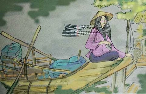 Thành lệ mỗi ngày cô chạy hai chuyến lên Vàm Rẫy và hai chuyến về. Sáng chở mấy chị, mấy dì đưa hàng lên rồi rước khách đi chợ về, chiều lại lên đón những người tan chợ. Mấy tháng trời đưa đò, da bắt nắng chỉ hồng lên chớ không rám đi.