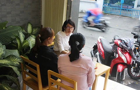 Chị TTC (trái) và đồng nghiệp kể lại quá trình bươn chải với PV. Ảnh: G.NGHI Ảnh: G.NGHI