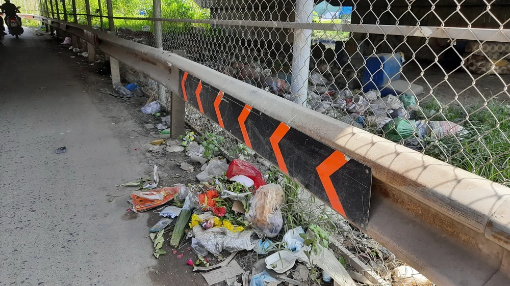 Đường Cây Cám đoạn chạy dưới gầm cầu Bình Thuận, thuộc địa bàn phường Bình Hưng Hòa B, quận Bình Tân, TP.HCM có nhiều rác (ảnh 1).