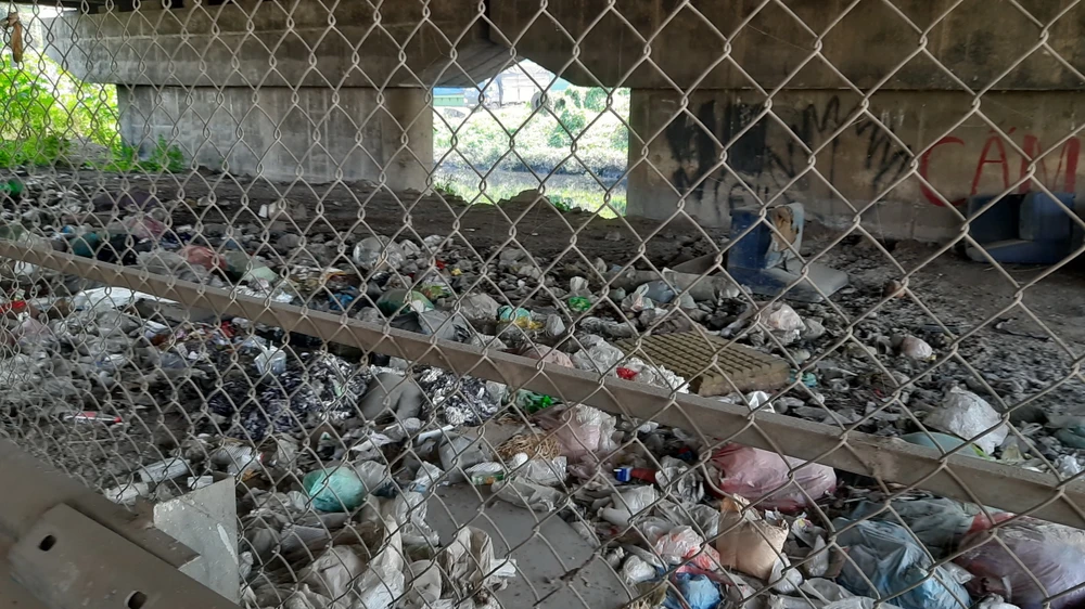 Do đoạn đường vắng, chạy dưới gầm cầu nên nhiều người đã đến đây để vứt rác trộm. Nhất là khu vực hành lang bảo vệ dưới chân cầu có rất nhiều bịch rác do người dân đổ trộm gây hôi thối, ô nhiễm môi trường, mất mỹ quan đô thị (ảnh 2).