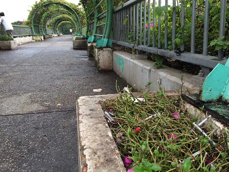 5, 6. Trên cầu bộ hành số 6 (giáp ranh giữa quận 6 và quận 8) lổn nhổn kim tiêm.