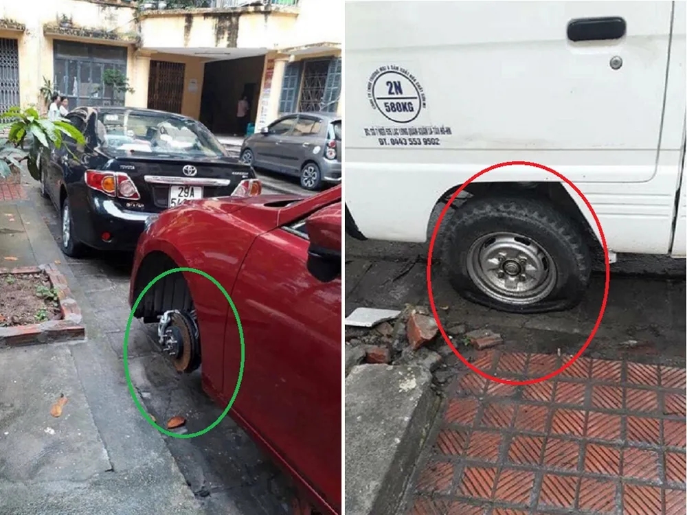 “Khi chúng tôi xem lại camera thì thấy một người dùng vật nhọn rạch lốp xe rất nhanh. Đã có 7 chiếc xe ở sân bị đâm thủng lốp, trong số đó có xe bị thủng cả 4 lốp, có xe bị 2-3 lốp. Hiện chúng tôi phải gọi người tại các garage đến tháo lốp mang đi sửa chữa” – anh L. cho hay.