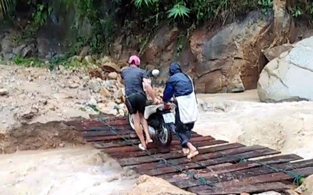 Nhiều cây cầu tạm được người dân và chính quyền làm qua các con suối, điểm sạt lở.