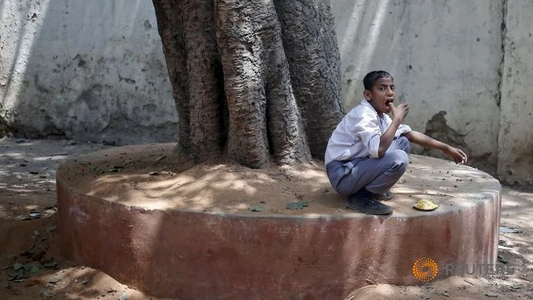Một học sinh ăn trưa miễn phí tại một ngôi trường do chính phủ quản lý ở New Delhi, Ấn Độ. Ảnh: Reuters