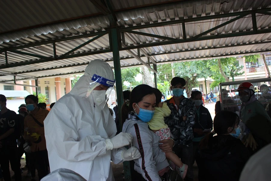 Trưa cùng ngày, thông tin từ Sở LĐ-TB&XH tỉnh Đắk Lắk cho biết, hiện số người từ các tỉnh, thành phía Nam về Đắk Lắk đã lên khoảng 2.000 người. Ngành y tế địa phương vẫn đang xét nghiệm test nhanh kháng nguyên COVID-19. Đồng thời lực lượng chức năng đang phân loại, giao cho các huyện, thị xã, thành phố đón về để thực hiện các biện pháp phòng, chống dịch theo quy định. Trong sáng nay, tại các địa điểm tập trung người về từ các tỉnh phía Nam, lực lượng chức năng đã tiến hành test kháng nguyên để phân loại.