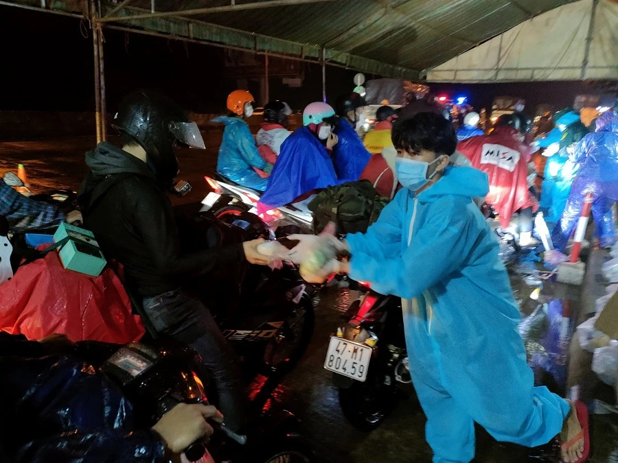 Để hỗ trợ những người về quê, các nhà hảo tâm đã phối hợp với lực lượng chức năng chuẩn bị hơn 2.000 phần ăn, nước uống, mỗi phần gồm: bánh mì, bánh bao, trứng, sữa, nước suối cấp phát. Tại chốt kiểm soát dịch lực lượng CSGT Công an tỉnh Đắk Nông, Công an huyện Đắk R’lấp cùng lực lượng chức năng tiến hành rà soát phân luồng người dân theo khu vực cư trú và khai báo y tế. Trong số công dân trở về, phần đông cư trú tại tỉnh Đắk Lắk. Ngay trong đêm, lực lượng chức năng tiến hành lập danh sách người dân theo từng tỉnh, liên lạc với địa phương nơi có người dân về quê để bàn phương án hỗ trợ đưa người dân về từng địa phương đảm bảo công tác phòng chống dịch bệnh Covid 19.