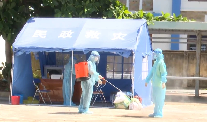 Khử khuẩn ở một bệnh viện dã chiến ở Phú Yên. Ảnh: VŨ XUÂN