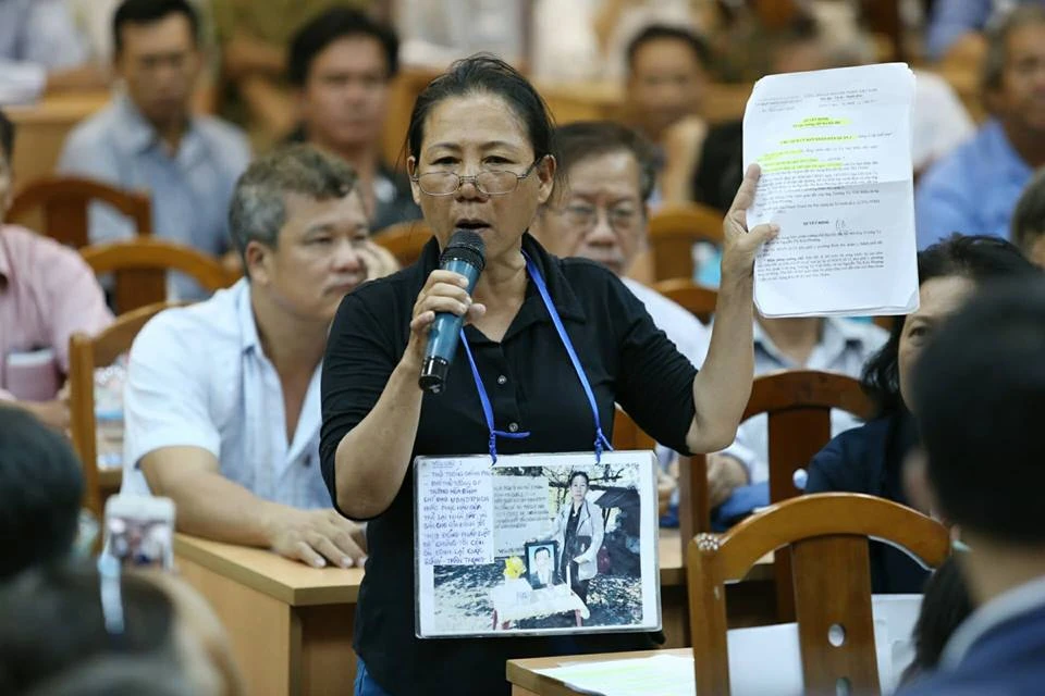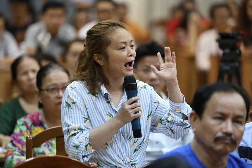 Cử tri Nguyễn Thị Kim Phượng bức xúc trình bày với tổ ĐBQH.