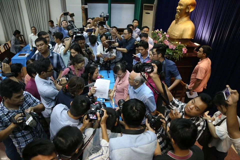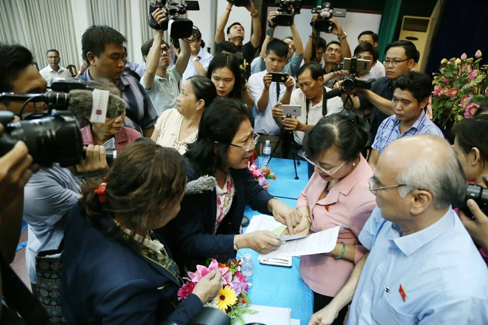 Cử tri vây các đại biểu để phản ánh.