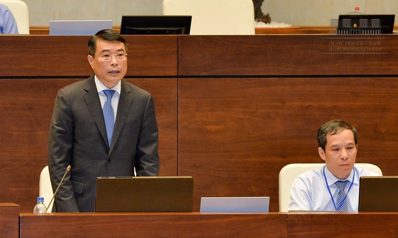 Thống đốc Ngân hàng Nhà nước Lê Minh Hưng phát biểu tại phiên thảo luận Quốc hội sáng 7-6.