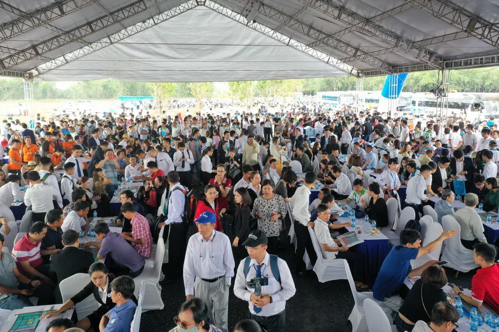 Sau thời gian dài trầm lắng do ảnh hưởng của dịch COVID-19, sáng 14-6, thị trường bất động sản (BĐS) Long Thành “dậy sóng“ với gần 2.000 khách tham quan dự án Khu đô thị thương mại - giải trí Gem Sky World 92,2 ha.