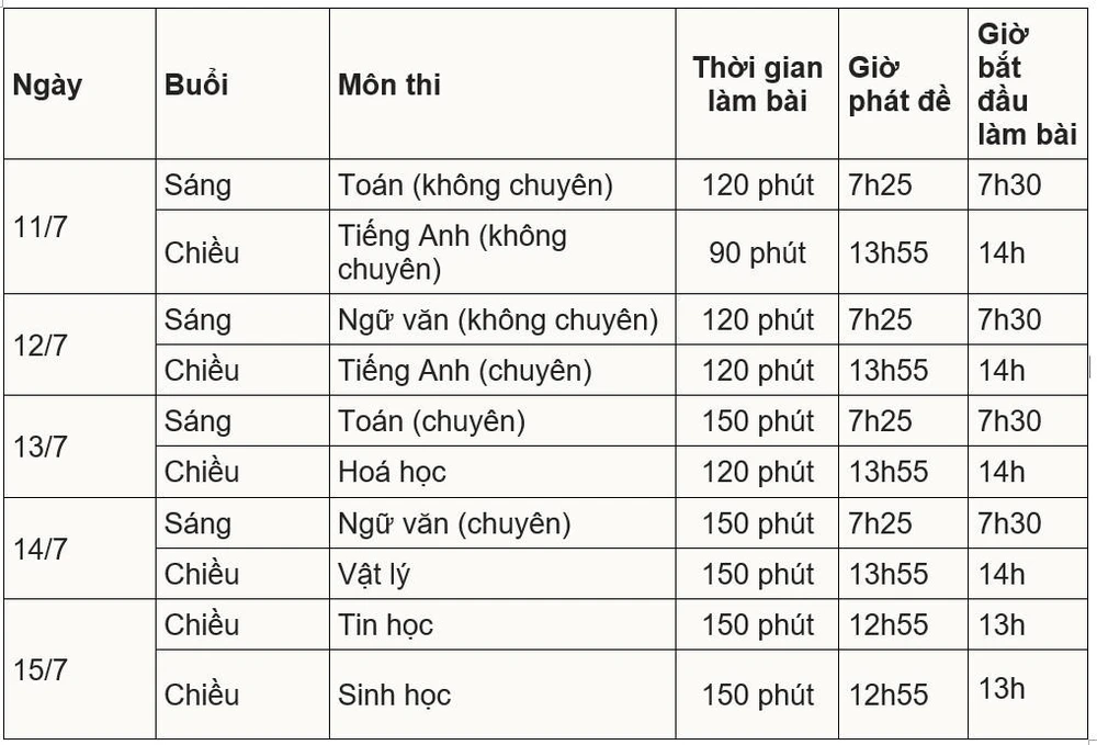 Lịch thi vào Phổ thông Năng khiếu