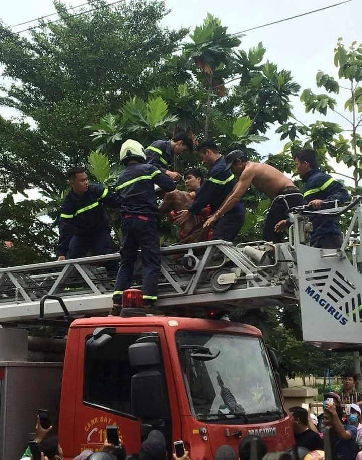 Nhận được tin báo của người dân, Phòng Cảnh sát PCCC và cứu nạn cứu hộ tỉnh Đồng Nai đã cử lực lượng và phương tiện xuống giải cứu.