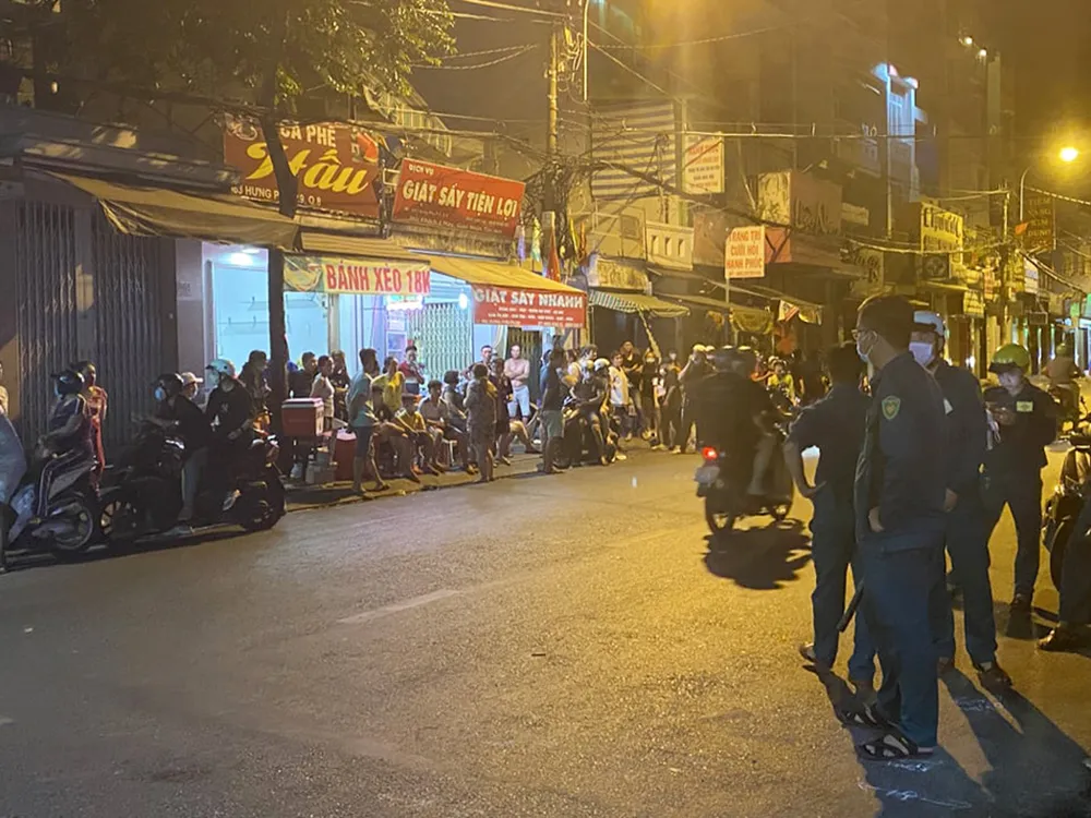 Nhận tin báo, Công an Quận 8 phối hợp với Phòng Cảnh sát hình sự (PC02) Công an TP.HCM có mặt khám nghiệm hiện trường, lấy lời khai truy xét. Tại hiện trường, công an thu giữ 2 cây dao tự chế, 1 két bia chứa chai thủy tinh bên trong có chất lỏng (nghi là "bom xăng"), 2 xe máy…