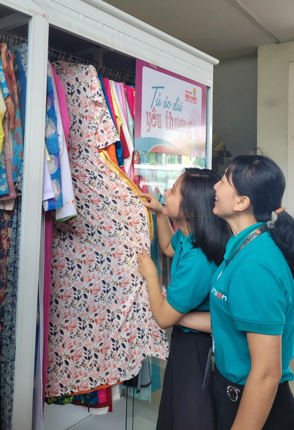 Dịp này, CĐVC TP cũng khánh thành "Tủ áo dài yêu thương” để nữ công nhân Khu Công nghệ cao mượn miễn phí trong các dịp lễ, Tết, cưới hỏi.
