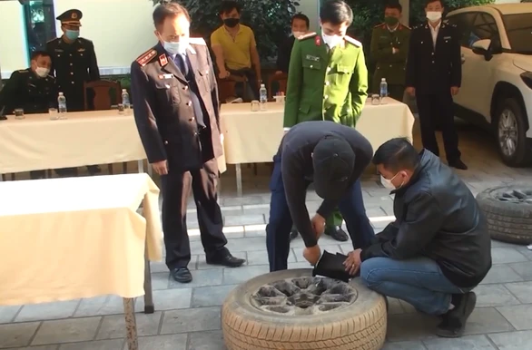 Các nghi phạm giấu ma túy vào lốp phụ để vận chuyển.