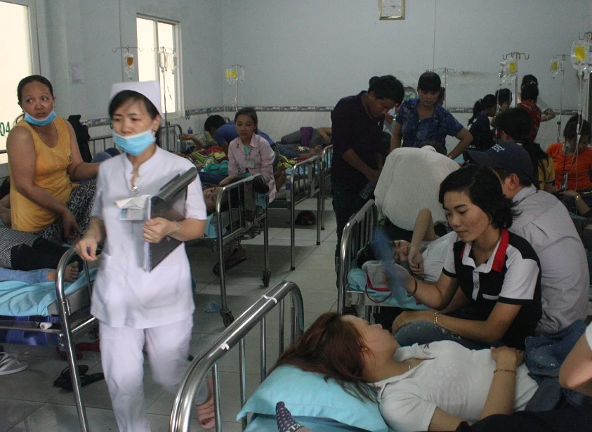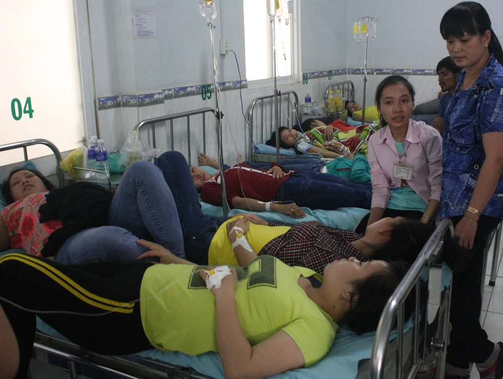 Hàng trăm công nhân biểu hiện ngộ độc thực phẩm sau bữa ăn. Ảnh: VŨ HỘI