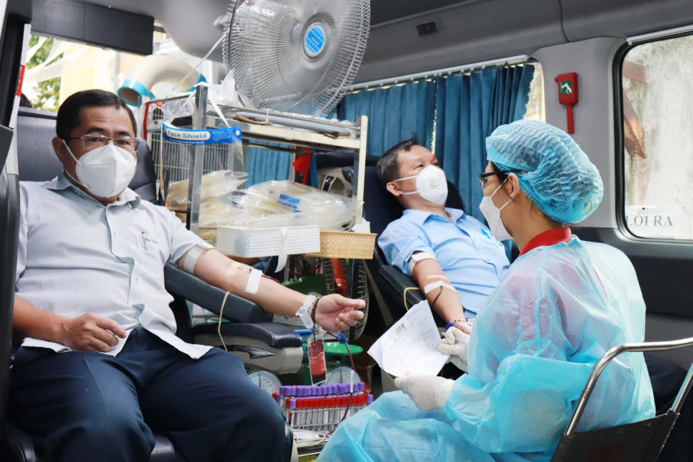 Mỗi người hiến từ 250-450 ml máu, góp phần cung cấp thêm lượng máu dự trữ trong mùa dịch bệnh.