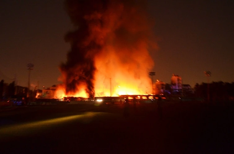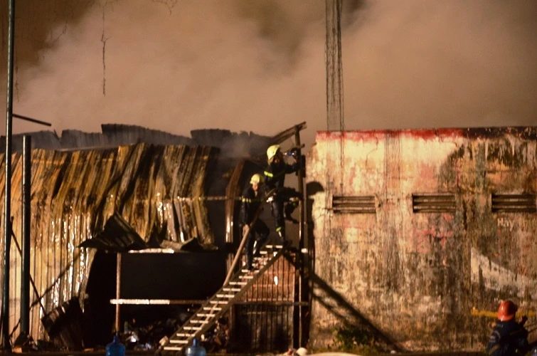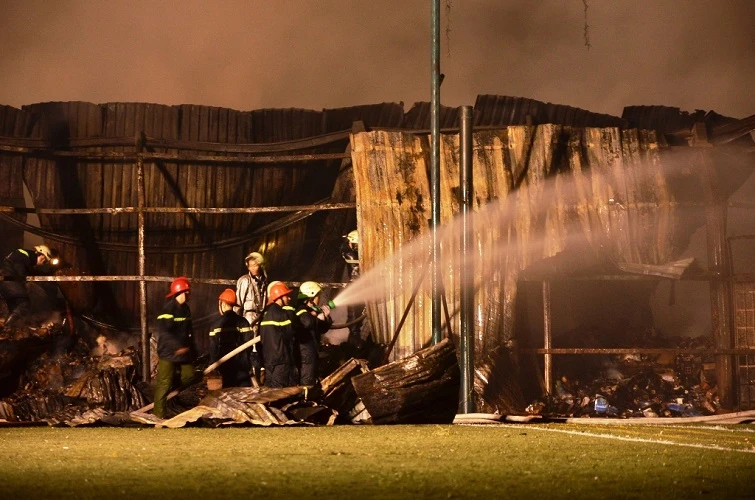2 giờ sáng cùng ngày, ngọn lửa được dập tắt nhưng lực lượng chức năng phải tích cực phun nước để tránh đám cháy bùng phát.