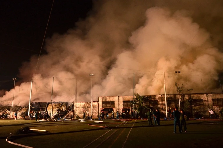 Gần 1 giờ sáng 6 – 2, ngọn lửa vẫn chưa bị khống chế, khói đen bao trùm diện rộng. Cảnh sát cứu hỏa đập bỏ tường bê tông, dỡ mái tôn nhà kho vào bên trong tiếp cận hiện trường.