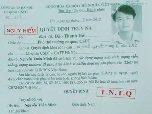 Quyết định truy nã Nguyễn Tuấn Minh.