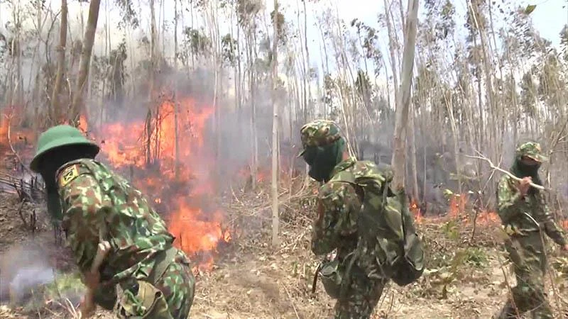 Nhiều lực lượng tham gia dập lửa đám cháy rừng tại huyện Phú Hòa. Ảnh: BM