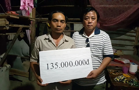Đại diện báo Pháp Luật TP.HCMtrao 135 triệu đồng của cộng đồng Facebook ủng hộ bước đầu cho gia đình anh Sỉ. Ảnh: PV