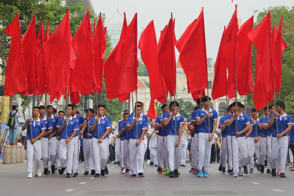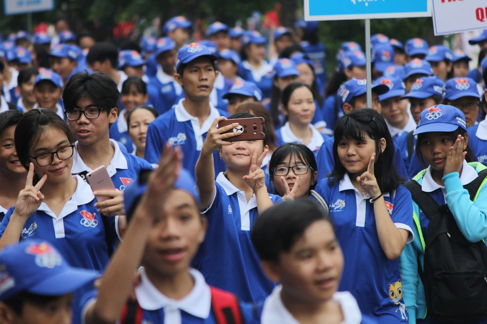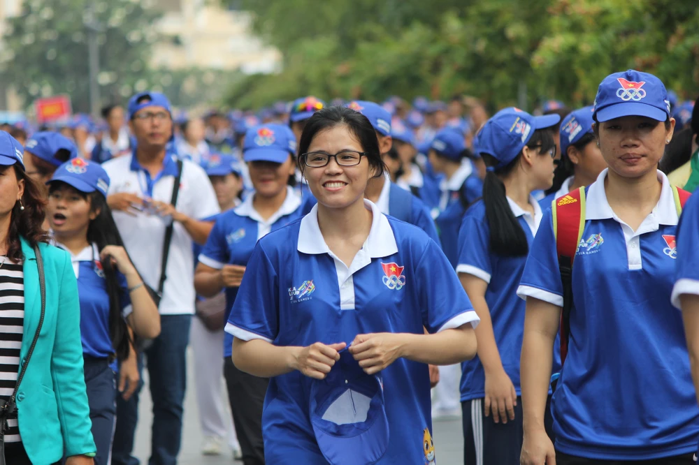 Các bạn trẻ hào hứng tham gia đi bộ cổ vũ đoàn thể thao Việt Nam tham dự SEA Games 29.