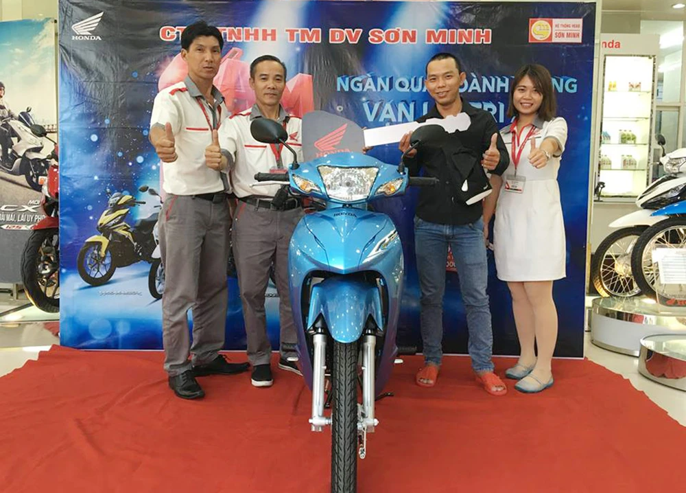 Theo đó, từ ngày 1-12-2018 đến hết ngày 4-2-2019, toàn bộ khách hàng mua xe từ 300 phân khối trở xuống do Honda phân phối đều có cơ hội quay thưởng để trúng ngay một xe tương tự. Nếu không trúng xe, khách hàng sẽ nhận được quà tri ân là thẻ cào điện thoại hay mũ bảo hiểm. Chương trình áp dụng cho tất cả khách hàng mua các mẫu xe thuộc bốn phân khúc, gồm: xe ga, xe số, xe côn tay và xe mô tô tại các cửa hàng bán xe Honda trên toàn quốc.