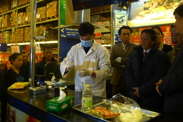 Xét nghiệm nhanh các mẫu thực phẩm. Ảnh: HUY HÀ