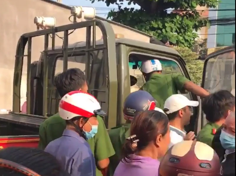 Công an Phú Thủy đưa bà Lại lên xe cảnh sát