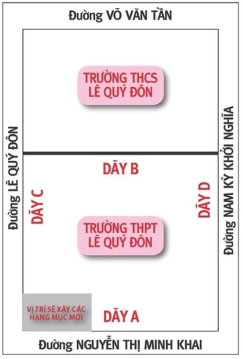 Sơ đồ Trường THPT Lê Quý Đôn. Đồ họa: H.LOAN