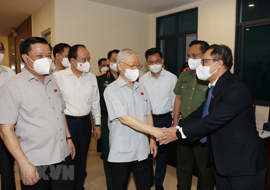 Tổng Bí thư Nguyễn Phú Trọng trong một buổi tiếp xúc với cử tri Hà Nội. Ảnh: TTXVN