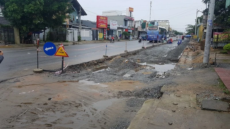 Dự án quốc lộ 1 qua huyện Bình Sơn nhiều lần trễ tiến độ. Ảnh: TẤN VIỆT