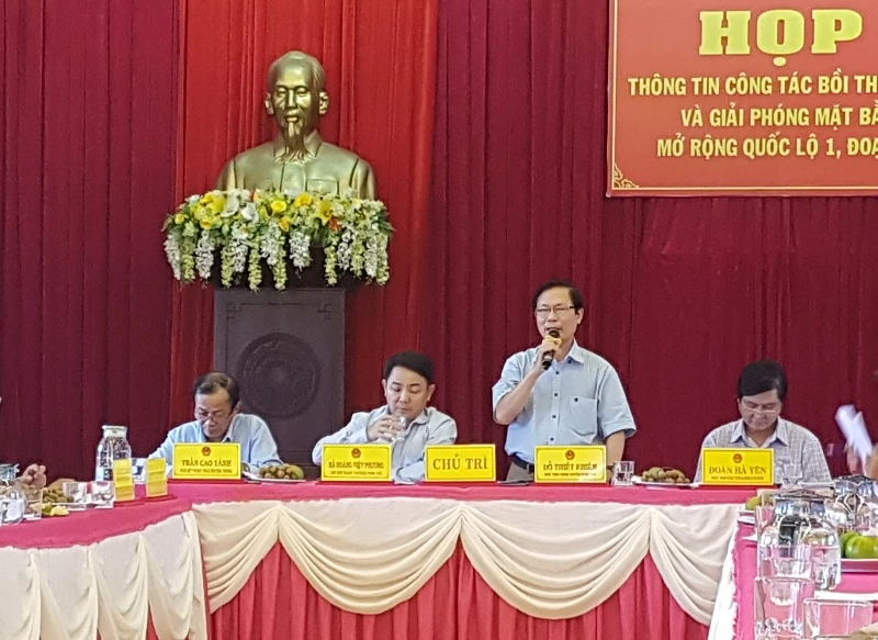 Báo cáo tại buổi họp báo, ông Đoàn Hà Yên, Phó Chủ tịch UBND huyện Bình Sơn, cho hay đã tham mưu Huyện ủy thành lập các tổ công tác về vận động GPMB quốc lộ 1. Đến lúc này địa phương đã tổ chức hơn 200 lượt trực tiếp đến từng hộ gia đình để giải thích, vận động.