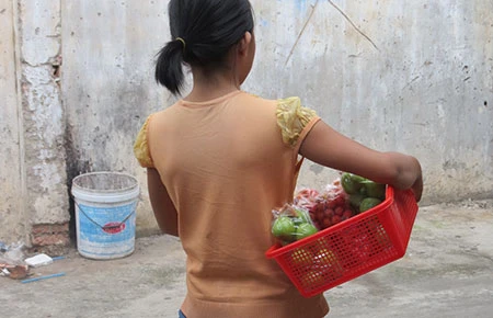 Được sự cho phép của bà Lan, cháu Tr. kể cho chúng tôi: Sau khi về ở nhà bà D. một thời gian, bà D. lấy vé số, trái cây yêu cầu cháu đi bán. “Biết mẹ mắc nợ tiền bà D. nên cháu cũng cố đi bán để trừ nợ cho mẹ. Khoảng 4-5 giờ chiều, bà D. chở cháu bằng xe máy đi bán, có khi 2-3 giờ sáng hôm sau mới về. Mỗi ngày cháu kiếm được hơn 600.000 đồng tiền lời và tiền khách thương tình cho và bị bà D. lấy hết… Khi bán không được, bà D. lại đánh cháu và dọa không được kể cho ai nghe nên cháu không dám nói với ai, kể cả mẹ” - cháu Tr. cho hay.