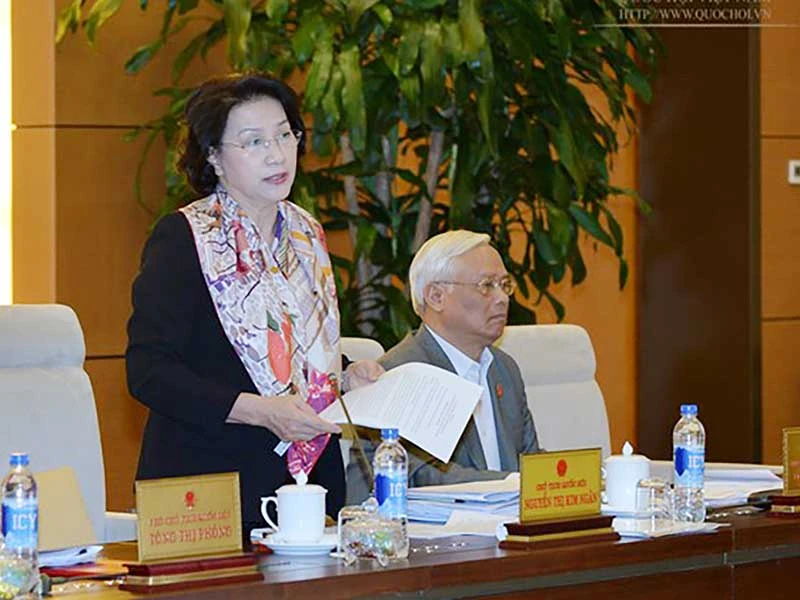 Chủ tịch Quốc hội Nguyễn Thị Kim Ngân đang phát biểu tại phiên họp Ủy ban Thường vụ Quốc hội ngày 22-12. Ảnh: QH